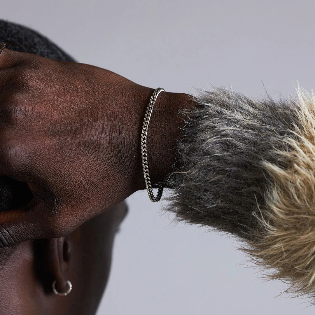 The Silver 3.5mm Curb Bracelet is a mid weight bracelet chain with a diamond cut finish for a reflective surface, perfect for wearing on its own or layering with other pieces. The bracelet is made from 925Β Sterling Silver and is hallmarked by theΒ Goldsmiths’ Company Assay OfficeΒ verifying its quality.
