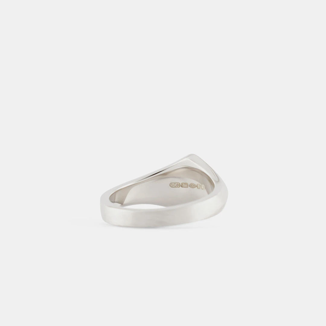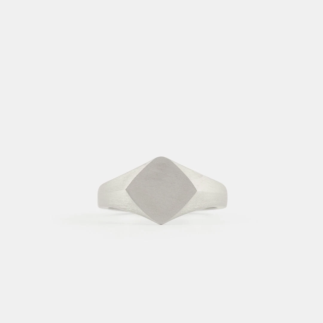 The Brushed Rhombus Ring is a signet ring with a rhombus shaped face which bevels into the shoulders, made from solid Sterling Silver for a heavy weight and high quality. The ring has a brushed finish on the outer surfaces, while the inside andΒ edges of the ring are polished, giving a unique texture change to the ring and a premium finish. The ring is plated in Rhodium,Β giving it aΒ polished,Β bright Silver look that won’t age and discolour.Β Rhodium plating is a premium Silver coloured plating that gives the jewellery a polished, reflective finish however with the brushed finish it creates a soft, brighter silver appearance as opposed to a reflective surface. As it is part of the platinum metal family, it is harder than gold so provides jewellery with a durable surface which resists tarnish.
