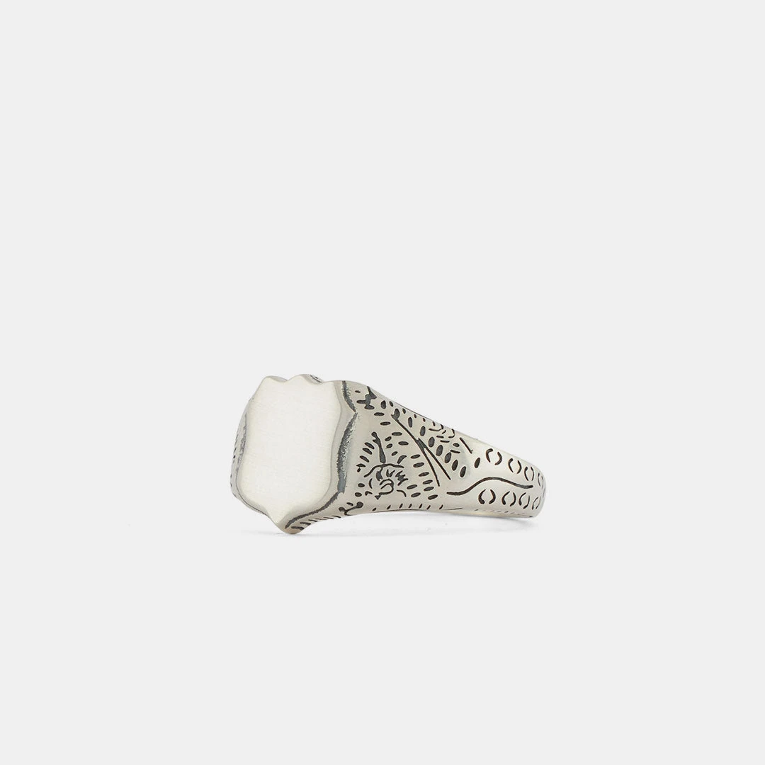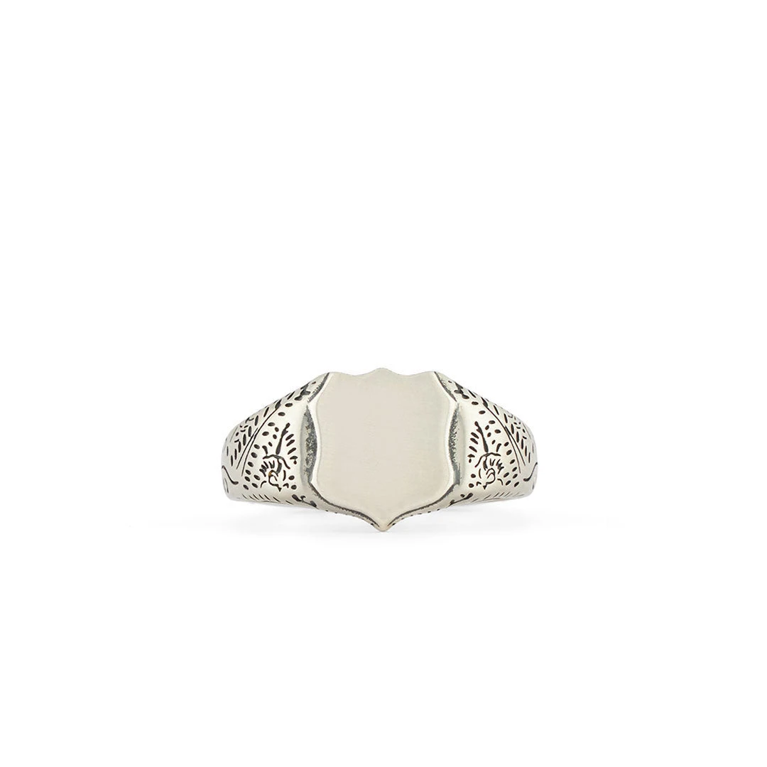 The Silver Shield Ring has a shield shaped face and features detailing on the shoulders and all around the band. The unique ring style makes it great for wearing alongside other pieces such as theΒ Silver Traditional Hallmark Ring for a contrast of textures and shapes. Alternatively, wear the ring on its own as an everyday piece.Β
